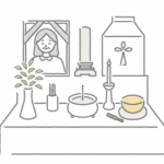 「後飾り(あとかざり)」は、火葬後のご遺骨と遺影、仮位牌などを置き、手を合わせるための小さな祭壇のことです。 後飾りの役割 ● 四十九日まで故人をお祀りする場納骨までご遺骨や仮位牌をお祀りします。 ● ご供養の場ご家族が […]
